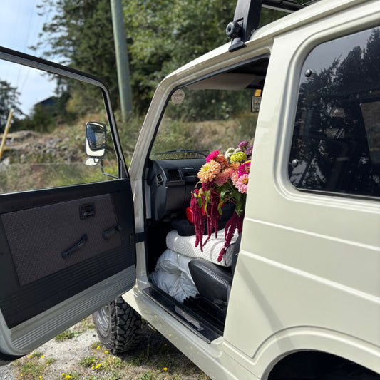 We are a small family run seed to stem flower farm, offering unique and playful blooms within the stunning East Sooke, Sc'ianew Territory on Vancouver Island. Nurturing crops on heritage farmland, where the land beautifully embraces the sea.